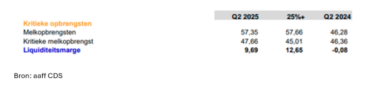 De liquiditeitspositie is voor sommige ondernemers een uitdaging. Stel dat de te verwachte marge aan het einde van het jaar 10 euro per 100 kg melk is, dan zou er 125.000 euro aan liquiditeit moeten zijn. Een deel zit mogelijk nog in voorraden of openstaande facturen en is dus niet direct beschikbaar. Dus de werkelijk beschikbare liquide middelen zullen in werkelijkheid mogelijk (veel) lager uitvallen. Het is slim om hier rekening mee te houden voor de nog te betalen belasting in 2026.